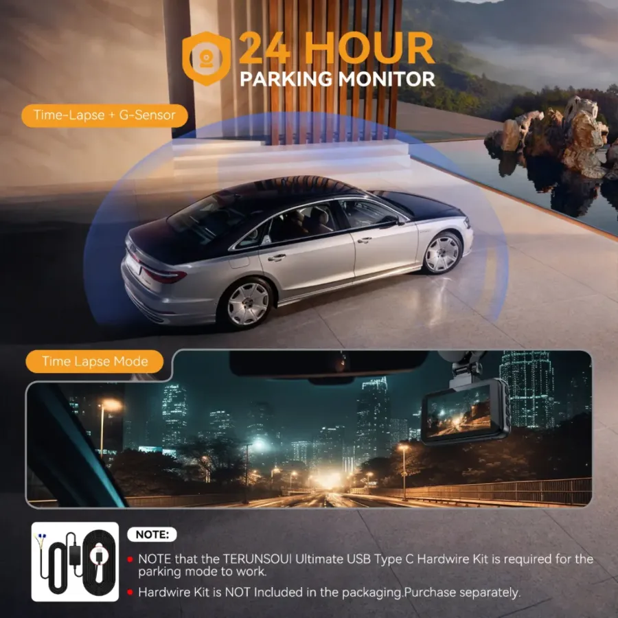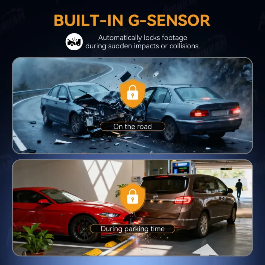 Equipped with an ultra-large F1.5 aperture and a 6-layer lens that boosts light intake by 60%, this dash cam excels in low-light conditions. Enhanced by WDR (Wide Dynamic Range) technology, it automatically adjusts exposure in extremely dark settings ,delivering clear, high-quality videos both day and night