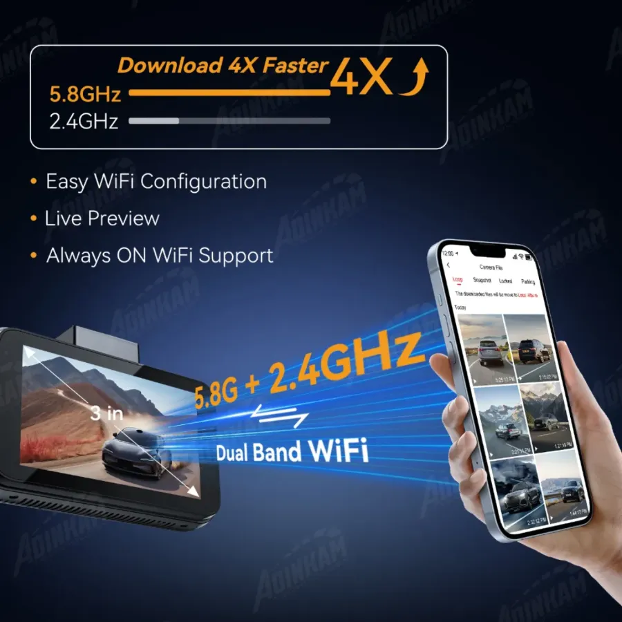 Experience lightning-fast connectivity with dual-band Wi-Fi support on both 2.4GHz and 5.8GHz frequencies. Download videos up to 4x faster, enjoy seamless live previews, and benefit from always-on Wi-Fi for effortless, real-time access and configuration—all through an intuitive and easy setup process.